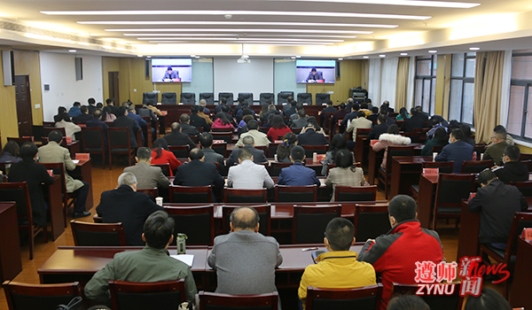 会议在遵义师范学院行政楼214会议室设分会场,遵义师范学院党委书记张波,党委副书记洪涛,副校长胡贵勇,纪委书记刘剑,副校长刘衍民,副处级以上干部在分会场参加会议。
