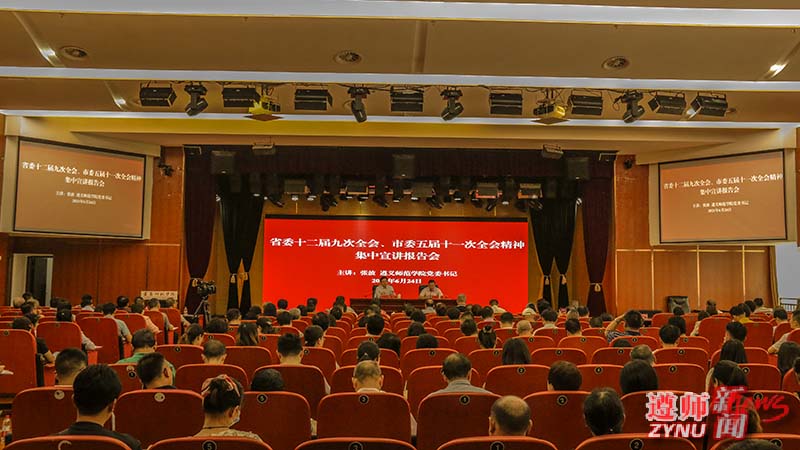 6月24日下午,学校党委书记张波在学术交流中心报告厅宣讲省委十二届九次全会、市委五届十一次全会精神。党委副书记洪涛主持宣讲会,党政领导班子成员、处科级以上干部、学生代表聆听宣讲。