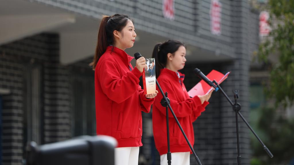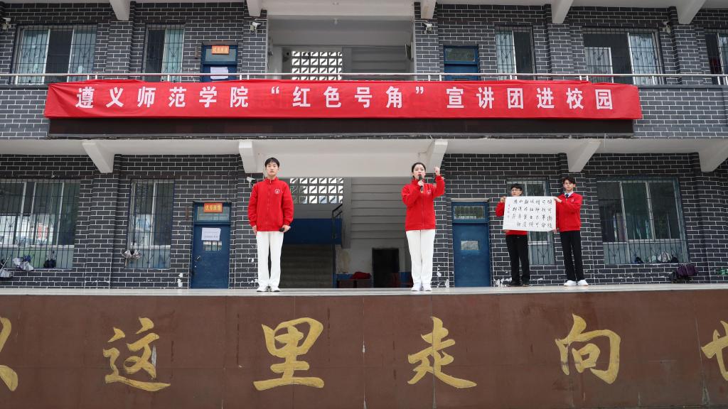 活动现场,遵义师范学院“红色号角”宣讲团成员进行了精彩生动的党的二十大主题读物阅读分享和红色宣讲。《闽山闽水物华新——习近平福建足迹》讲述习近平总书记关心教育、关爱青少年的生动事例,展现习近平总书记在福建工作期间为现代化建设事业所作出的理念创新和实践探索,引导在场师生追寻领袖足迹、感悟思想伟力;《绝笔诗》《一盏马灯照前程》《杜富国的故事》回忆革命事迹、追寻红色记忆,台下同学们听得眼眶湿润。音乐与舞蹈学院合唱团用一首原创歌曲《知道为了谁》将活动推向高潮。