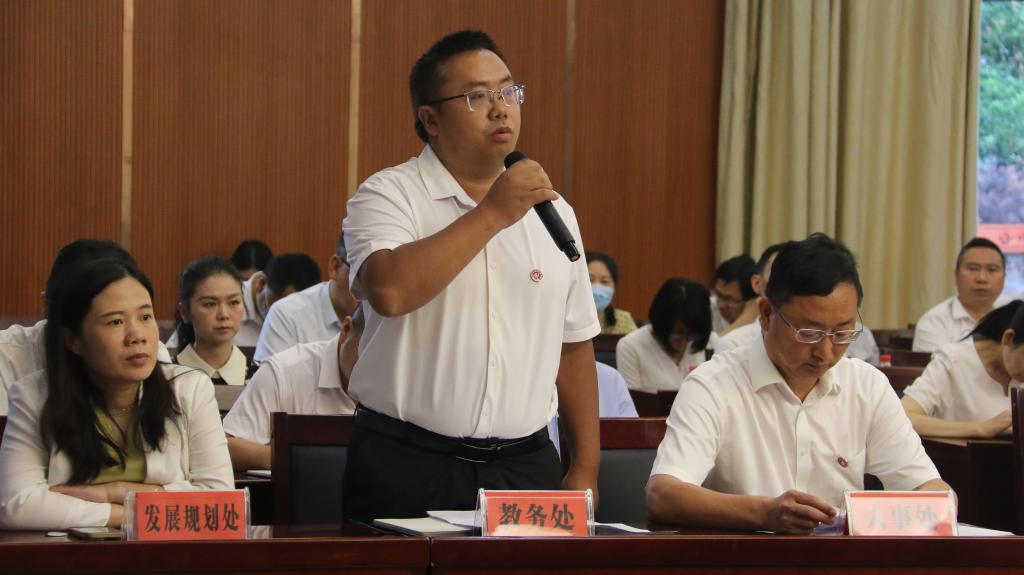 刘肇军代表遵义师范学院作表态发言。我们要从主观找原因,分析自省;要举一反三,狠抓整改落实。全校各单位要按照专家组开出的“处方”,深入自查,并切实整改,持续提高学校师范类专业办学水平和人才培养质量。(文/孔沿刁、刘茂、程华琴 图/刘琳、胡淇匀、张秀英)