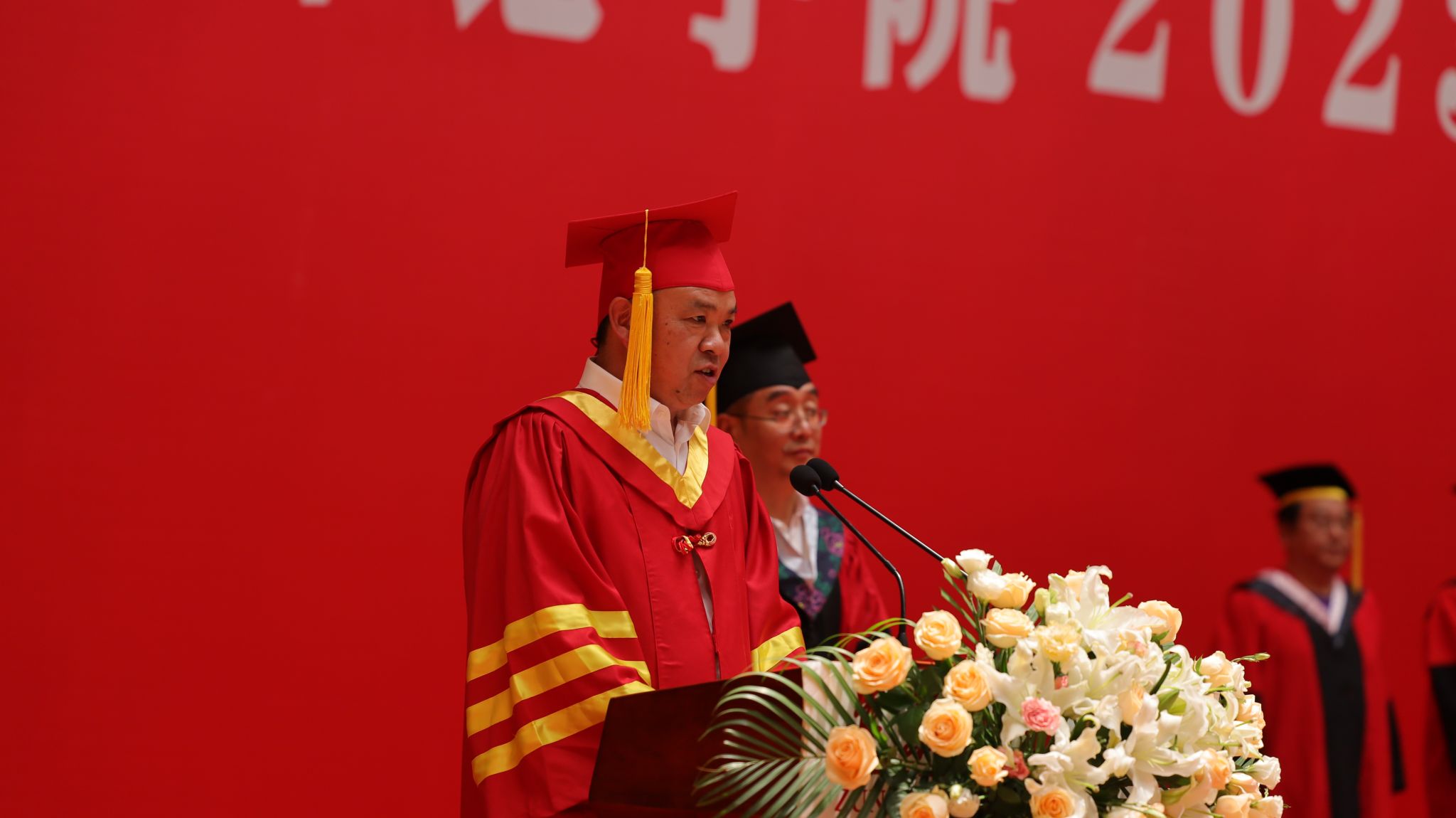 6月20日下午,遵义师范学院2023年毕业典礼暨学位授予仪式在体育馆举行。学校党委书记张波,党委副书记、校长刘肇军,党委副书记曾伯平,党委委员、副校长娄胜霞、胡贵勇,党委委员、纪委书记刘剑,副校长张鹏,党委委员、副校长刘衍民、江山,党委委员、组织部部长、统战部部长王明述,党委委员、宣传部部长王春华,各二级单位负责人,教师代表等到场送别毕业生。江山主持典礼。