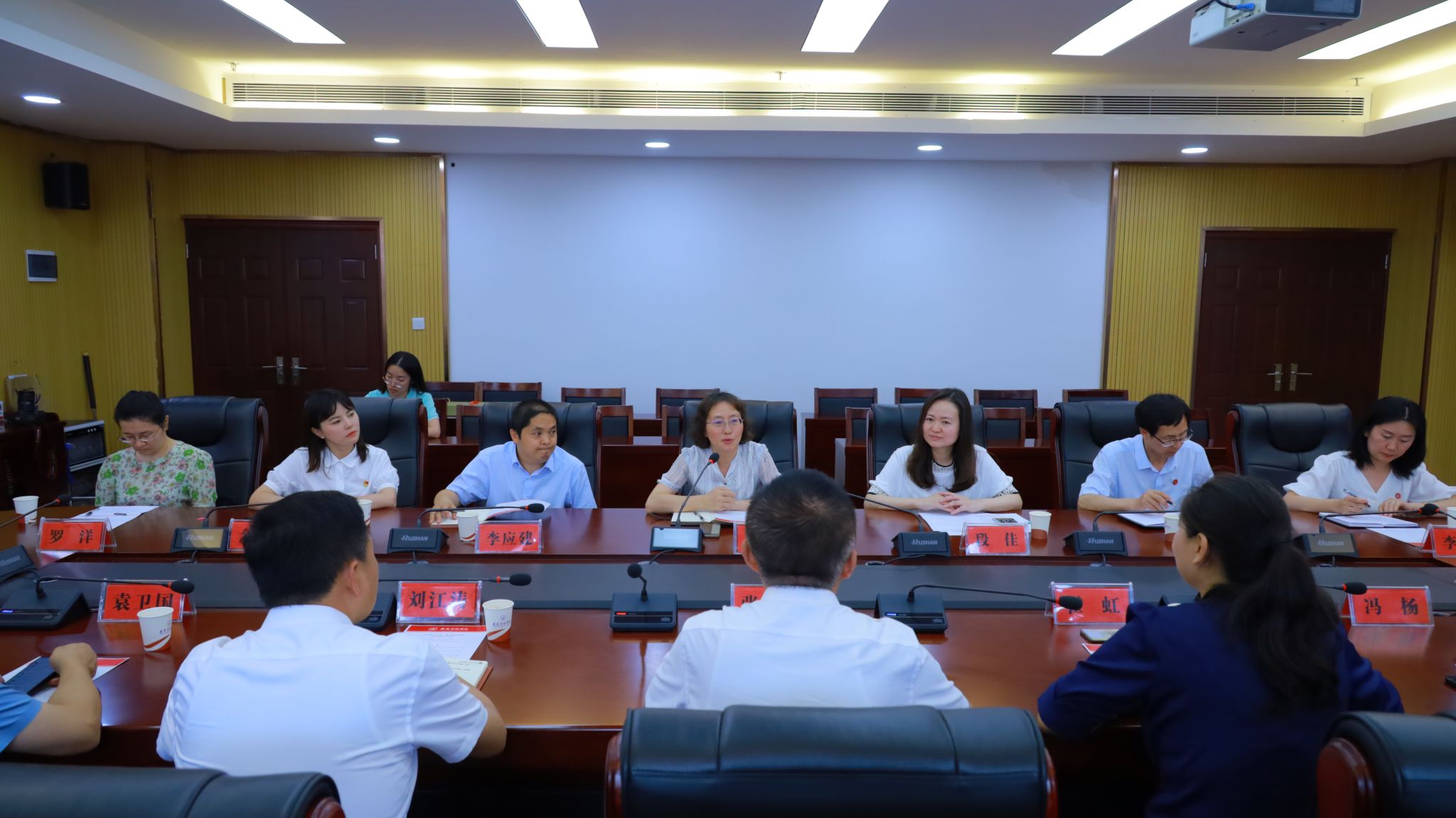 在交流座谈会上,江山代表我校对张继东一行表示热烈欢迎,并介绍了我校基本情况、发展历史、办学特色、红色育人、“一站式”学生社区建设等情况。
