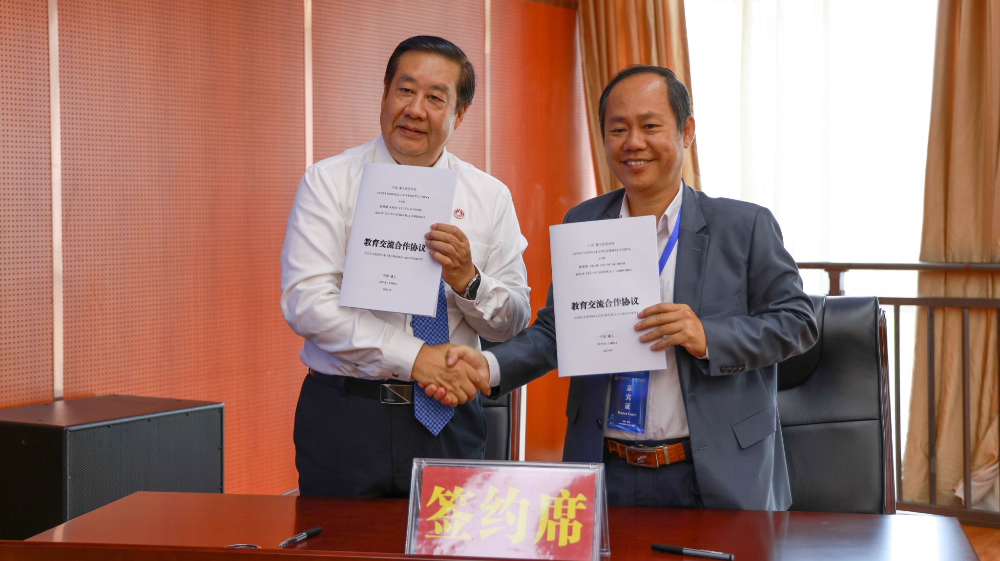 胡贵勇代表遵义师范学院与遵义市文化旅游局、柬埔寨克鲁扬学校签署合作协议,并向国际青年代表授旗。按照协议,我校将在遵义市文旅景点建立留学生研习基地,并在老挝波里坎赛省、柬埔寨克鲁扬学校建立实践实习基地,通过建立长期合作关系,探讨留学生培训模式和途径等。