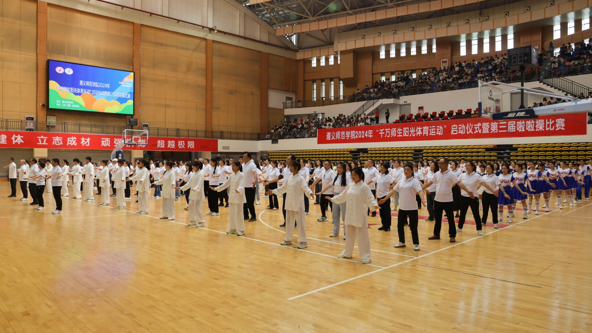 青春与活力舞动,传统与现代融合。4月26日下午,遵义师范学院2024年“千万师生阳光体育运动”启动仪式暨第三届啦啦操比赛在体育馆举行。