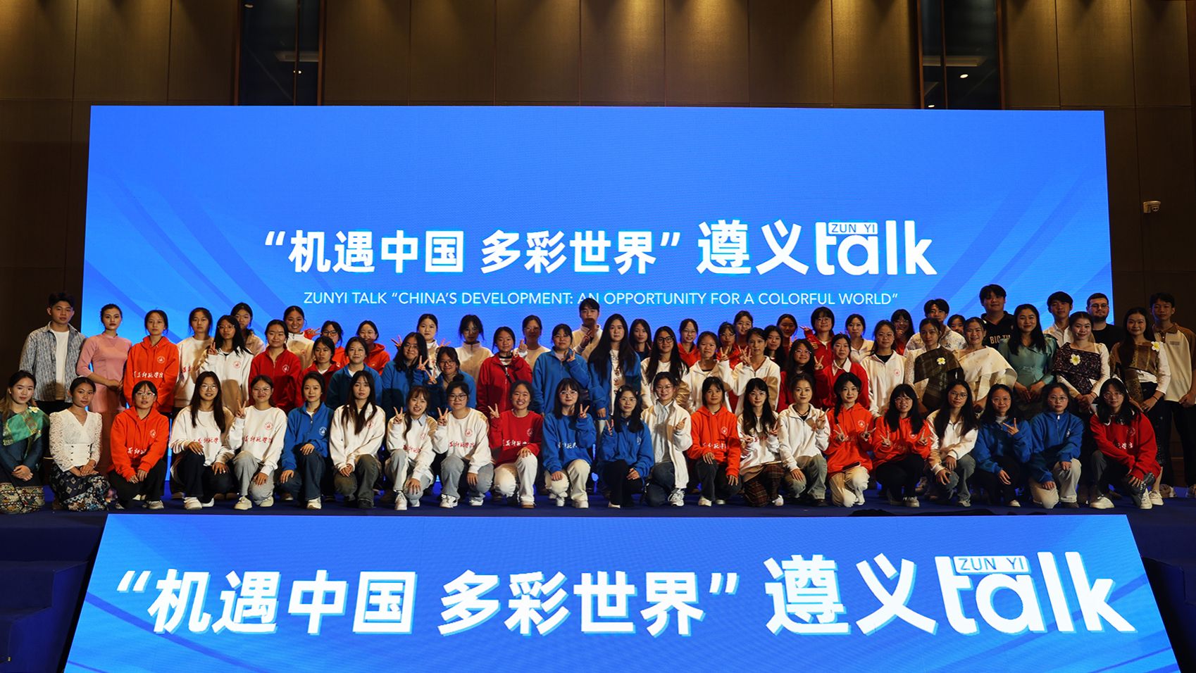 本网讯(文/黄玥、蒲晓双 图/陈思意、柳祥杰、李雅琪)10月28日至31日,由中国外文局、省政府新闻办主办的“机遇中国 多彩世界”国际交流周传播活动在遵义举行。我校170名师生代表受邀参加,与国内外专家学者、驻华使节、外籍博主、国际青年等,围绕贵州的红色文化、绿色发展等进行参访交流。