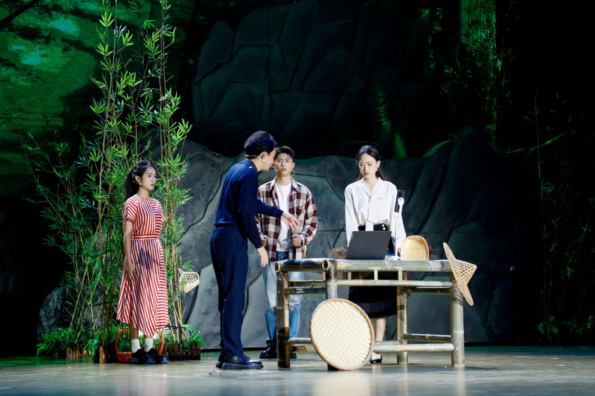 2022级播音与主持艺术专业的万雨婷在剧中扮演一位驻村书记,通过红军长征时期留下的一件斗笠坚定了信念,决定义无反顾地投身乡村振兴,帮助当地竹编非遗产品走出大山。剧中传承下来的斗笠正是红军留下来的奉献和牺牲精神,让穿越时空的“红色基因”在新时代中根植“红心”青年心底,让在迷茫与困惑中的青年们,坚定地向着心中的那束光前行。