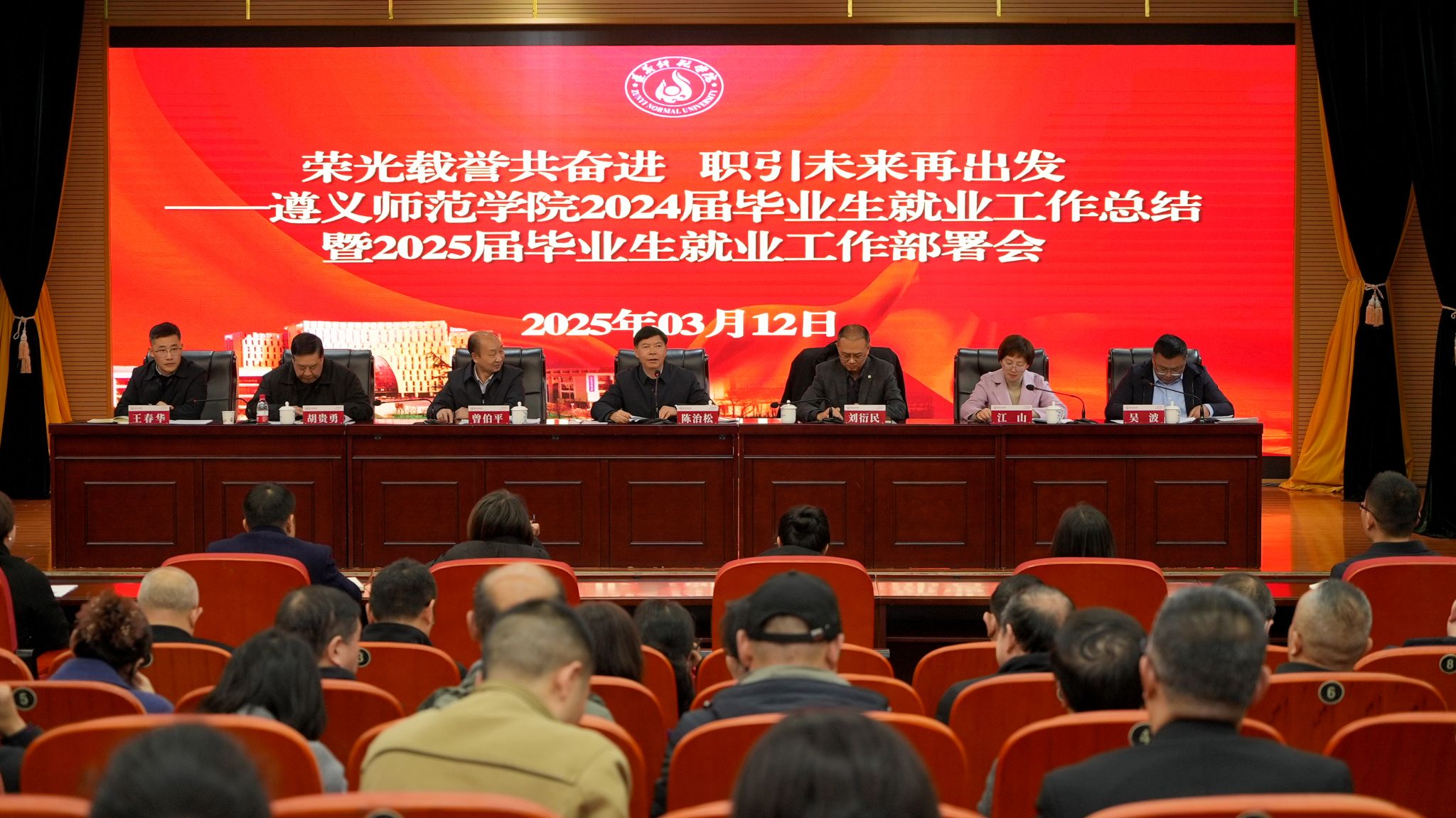 本网讯(招生与毕业生就业指导处)为深入学习贯彻党的二十届三中全会精神和全国教育大会精神,落实落细党中央、国务院关于高校毕业生就业工作的各项决策部署,总结工作、分析形势,对做好2025届毕业生就业创业工作进行动员部署,遵义师范学院于3月12日上午在学术交流中心报告厅召开2024年毕业生就业工作总结暨2025届毕业生就业工作部署会。