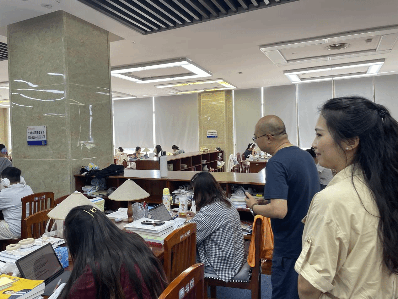在学生宿舍,周晶与留校学生亲切交流,详细询问其学习规划、生活保障等情况,并仔细检查消防设施、生活设施设备,为大家送上暖心鼓励,叮嘱大家珍惜时光、专注目标,合理安排作息,注意防暑降温,确保身心健康。在图书馆,自习区域座无虚席,留校学生全心投入学习,周晶轻步巡视,细致观察学习环境,并检查图书馆用水用电等后勤保障工作。