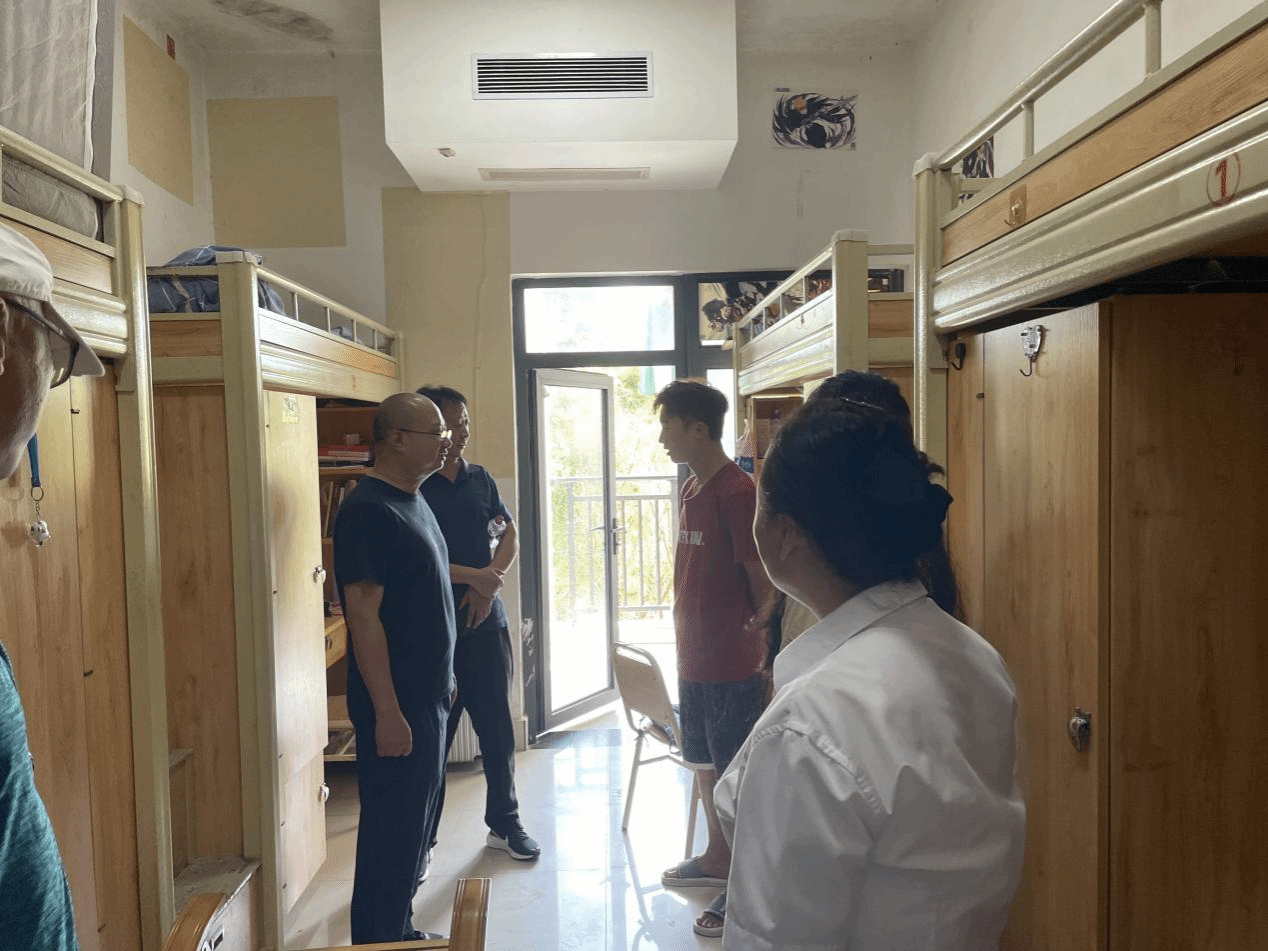 本网讯(党委学生工作部) 为全面掌握暑期留校学生状态,切实做好服务保障工作,筑牢学生暑期安全防线,8月4日上午,遵义师范学院党委副书记周晶带领党委学生工作部及相关二级学院负责人,深入学生宿舍和图书馆,看望慰问暑期留校学生,并检查安全管理工作。