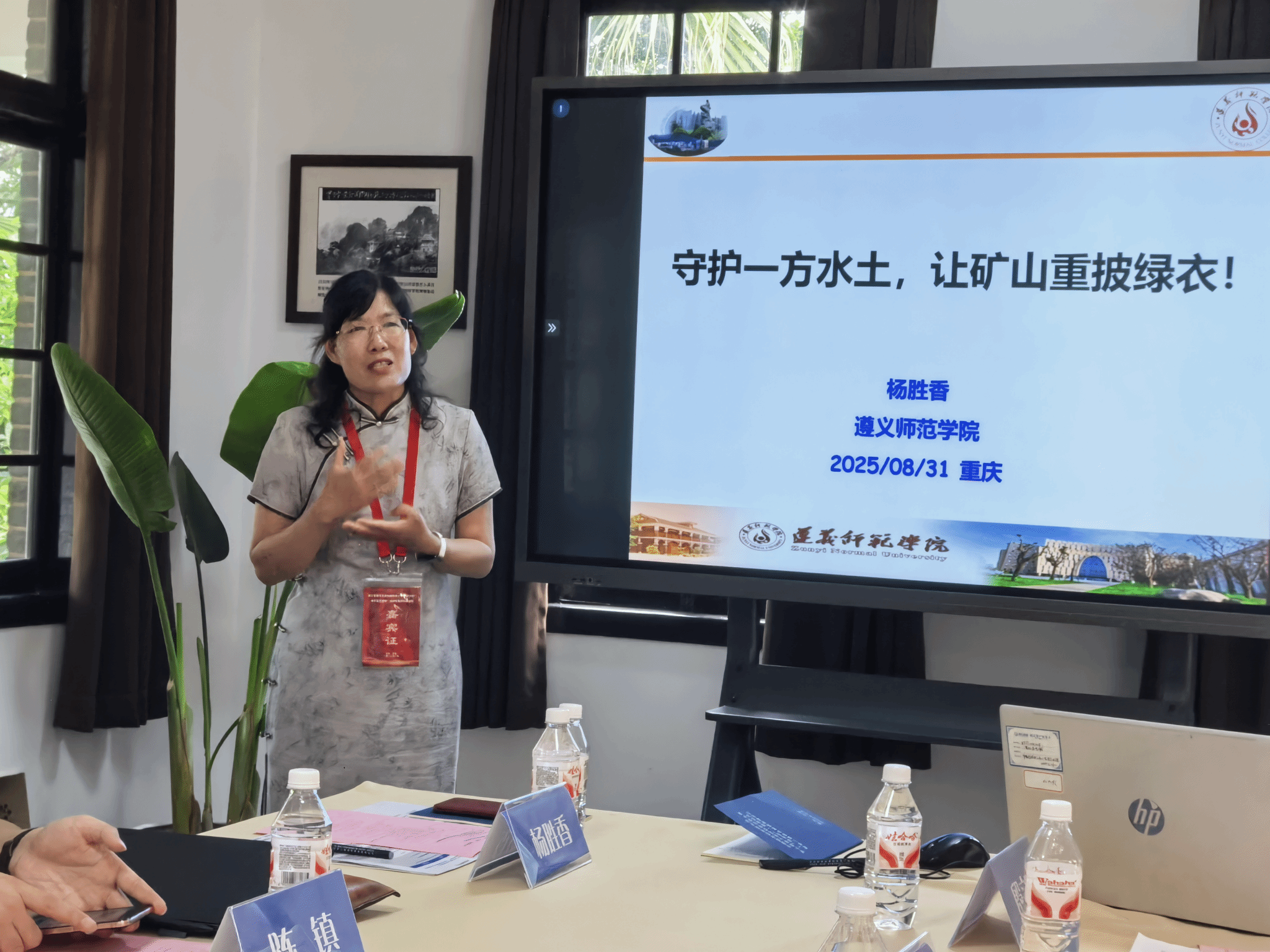 遵义师范学院资源与环境学院教授杨胜香受邀参加会议,并作题为《守护一方水土,让矿山重披绿衣》的报告。杨胜香就绿色矿山建设标准、矿山生态修复技术和程序等汇报了学校团队在矿山修复工作上取得的主要成绩,并分享了团队“以研促教,产教融合”方面凝练的“11244”经验做法及主要成效。报告内容丰富,且具有前瞻性,引发了现场专家们的广泛讨论,并受到肯定和好评。