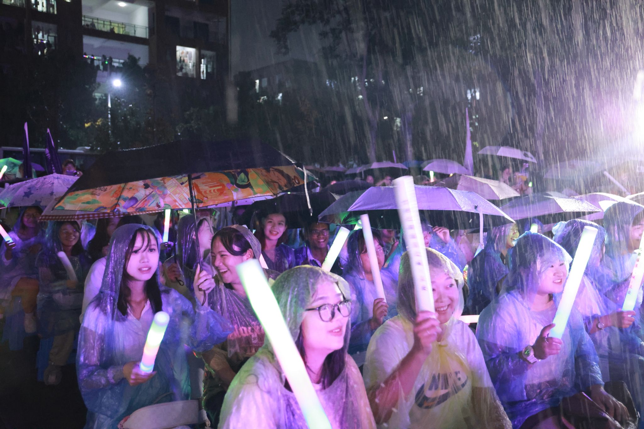 现场观众、信息工程学院学生兰权军说:“虽然活动途中下雨了,但乐队和学校师生依然坚持。音乐在风雨中奏响,彰显出对梦想的执着、对生活的热爱,传递出不屈的力量。”