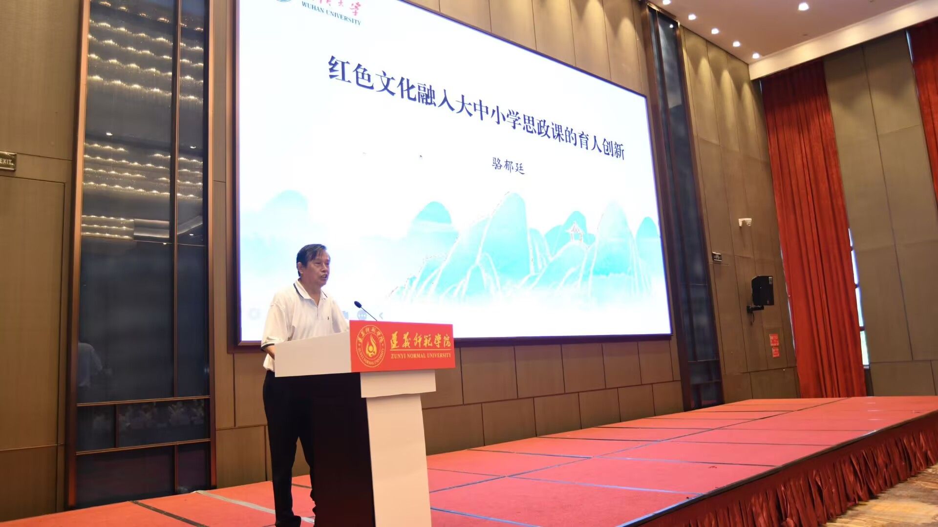 武汉大学思想政治教育研究院院长、教授骆郁廷,以《红色文化融入大中小学思政课的育人创新》为题,对红色文化融入大中小学思政课育人的时代价值、重点内容、实践进路等进行了深入讲解。