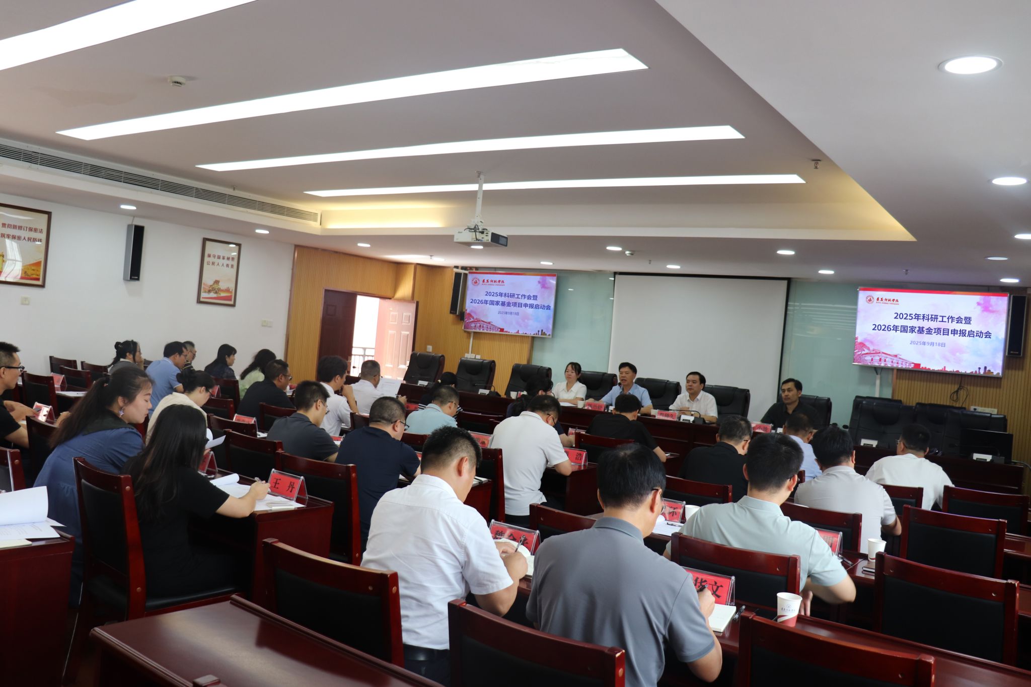 本网讯(科研处) 为全面总结2025年科研工作,推进2026年国家级基金项目申报工作,提升教师科研竞争力,9月18日下午,学校召开2025年度科研大会暨2026年国家级项目申报启动会。