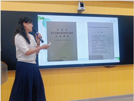 分享环节,五位来自不同二级单位的教师依次带来深度解读:《诗韵芳华:沙滩文脉中的才媛身影》婉约隽永,《习近平关于注重家庭家教家风建设论述摘编》发人深省,《攻坚路上》振奋人心,《辨“预制〈红楼〉”、品原著真味》妙趣横生。在舒缓的音乐萦绕中,分享者声情并茂,引领大家穿梭于字里行间,感受生活与社会的辽阔,触发关于家庭、情感、国家与人生的深刻共鸣。