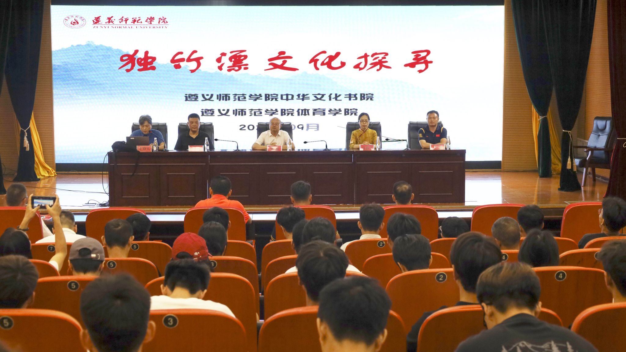 本网讯(文/施宣 图/梁龙莲)9月28日晚,独竹漂文化探寻讲座在遵义师范学院学术交流中心二楼报告厅举行。