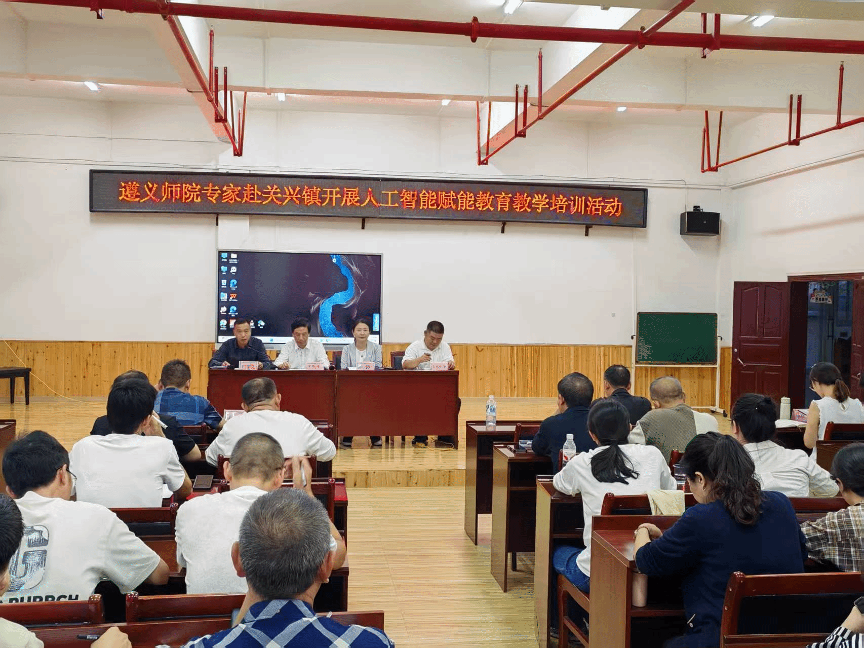 本网讯(教务处) 为贯彻落实乡村振兴战略,深化校地合作,充分发挥高校人才、智力和科技优势,助力提升余庆县关兴镇教师人工智能赋能教育教学的能力和水平,9月28日晚,遵义师范学院赴余庆县关兴镇开展人工智能赋能教育教学培训。