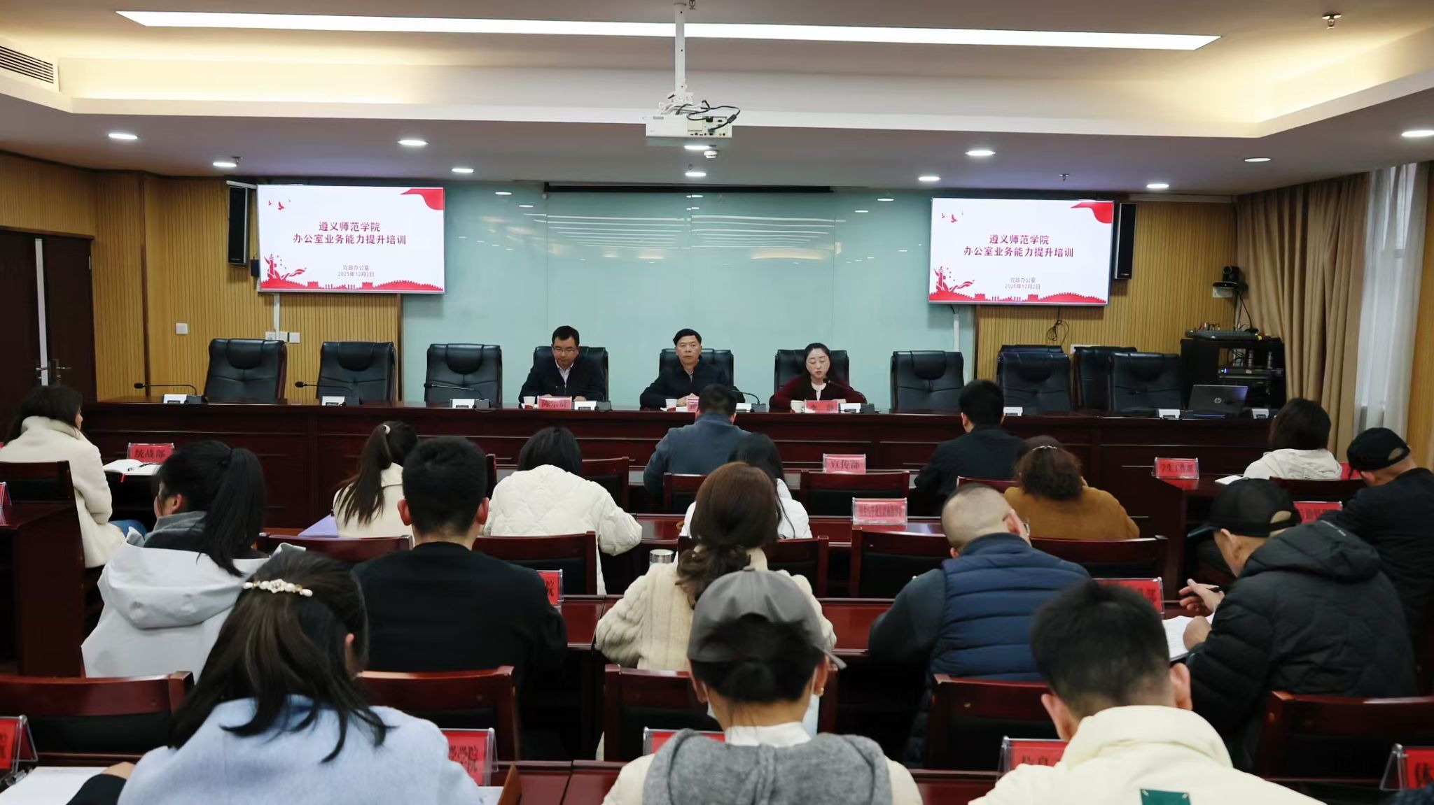 本网讯(文/陈小媛 图/敖梓豪) 12月2日,全校办公室主任会议暨办公室业务能力提升培训讲座在行政楼214会议室举办。学校党委书记陈治松出席会议并作专题讲话,强调要着力提升履职能力,努力当好服务学校中心工作的合格办公室主任。学校党委委员、党政办公室主任李静主持会议。遵义市委办公室文书科科长华兵、学校党政办公室副主任陈宗贤联合主讲。